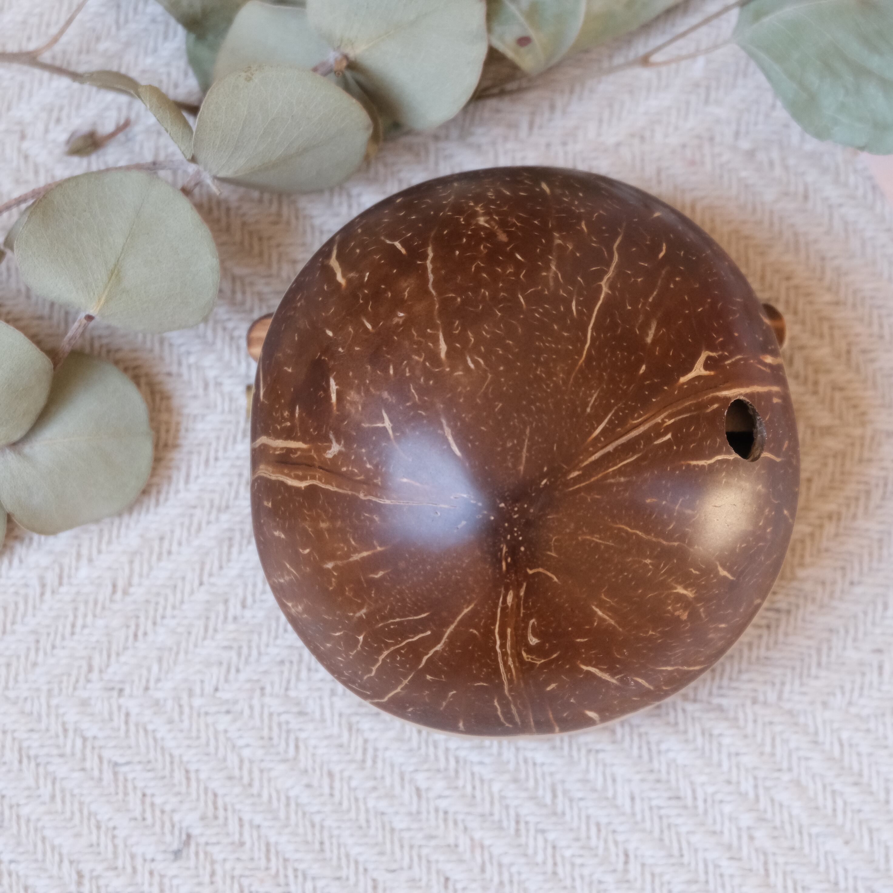 ココナッツの実で作ったコロンと可愛いサイズのカリンバです。